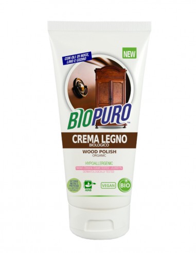Crema de intretinere si curatare mobila din lemn de la Biopuro contine uleiuri de in, nuca si uleiuri esentiale de cuisoare si scortisoara. Aceste substante 100% naturale ajuta la hranirea suprafetelor de lemn, previne depunerea prafului, reda stralucirea lemnului.